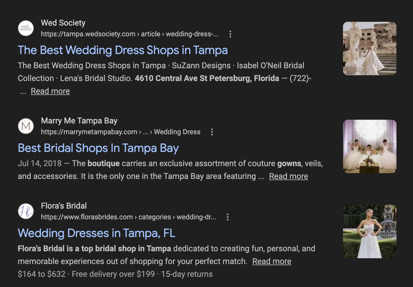 Capture brides actively searching for “bridal boutique near me” and appointment bookings